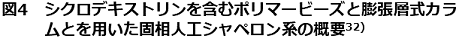 工業スケールへの応用を考えると、タンパク質のリフォールディング技術には、以下のような条件を満足することが望まれる。(1) 装置の大きさができるだけ小さい。(2) 工程数ができるだけ少ない。(3) 材料が再利用可能である。このような観点から、機能性添加剤を固相上に固定化する研究が盛んに行われている。なぜなら、添加剤の固相上への固定化は、カラムを用いた連続系リフォールディングシステムへの応用を可能とすることから、潜在的に装置のサイズを小さくでき、リフォールディング後の添加剤とターゲットタンパク質の分離精製工程を簡略化し、材料の再利用を可能にするという利点を有するからである。我々の研究グループでは、β-シクロデキストリンを含むポリマービーズ (β-シクロデキストリン-エピクロロヒドリンコポリマー) を用いて、ACA法を固相化することに成功した32)。まず、可溶化モデルタンパク質を界面活性剤水溶液で希釈することにより、界面活性剤との複合体を形成させ、次に、β-シクロデキストリンを含むポリマービーズ懸濁液を添加して、界面活性剤を包接除去した。このような二段階の操作により、モデルタンパク質である変性α-グルコシダーゼのリフォールディング収率を大きく向上させた。さらに、膨張層式カラム内でポリマービーズによる包接を行う反復回分系のACA法の構築も実現した (図4)。また、他のグループでは、久保井らは、リポソームを固定化したカラムに、変性・還元リゾチームを通すことによって100%の収率でリフォールディングに成功しており28)、PDI様活性を模倣した低分子量チオール化合物を固相上に固定化した研究も、数例報告されている33)。