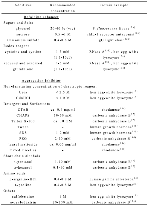 2) a) Baneyx, F.: Curr. Opin. Biotech., 10, 411 (1999). b) Clark, E. D. B.: Curr. Opin. Biotech., 12, 202 (2001). c) Rudolph, R., Lilie, H.: FASEB J., 52, 49 (1996). d) Clark, E. D. B., Schwarz, E., Rudolph, R.: Methods Enzymol., 309, 217 (1999).