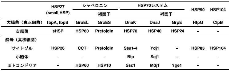 表1 微生物の主要な分子シャペロン