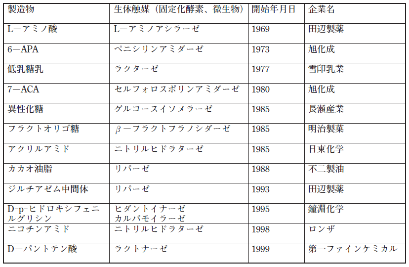 表1 生体触媒によるバイオリアクターの工業化例5)