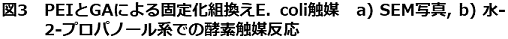 蛋白質の結合水を保持するという観点から、含水ゲル内や細胞内、多孔性粒子内に緩衝液と一緒に酵素触媒を固定化する方法は、有機溶媒中での安定性と操作性を向上するためには非常に有効な手段である。現状では、有機溶媒中での活性・安定性の高い酵素触媒を創製し、これを何らかの固定化法でさらに安定化させるのが最も優れた手法であると考えられる。