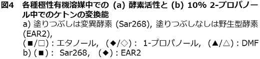 酵素を極性有機溶媒中で利用するためには、限界を認識しつつも適切な反応場を選択することが大切であり、さらにそうした反応場に適した優れた酵素触媒を創製することが必要となる。