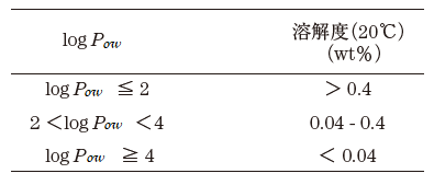 表2 有機溶媒の水溶解度とlogPow値との関係