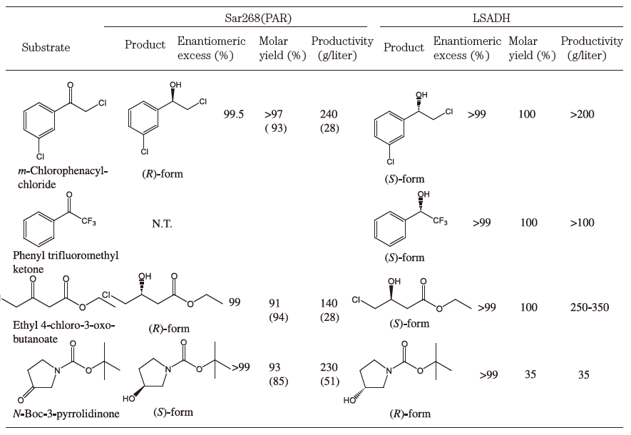 表4 水素移動型バイオ不斉還元による光学活性アルコールの生産例