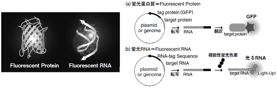 図1 新しい核酸モジュール:光る蛋白質と光るRNA