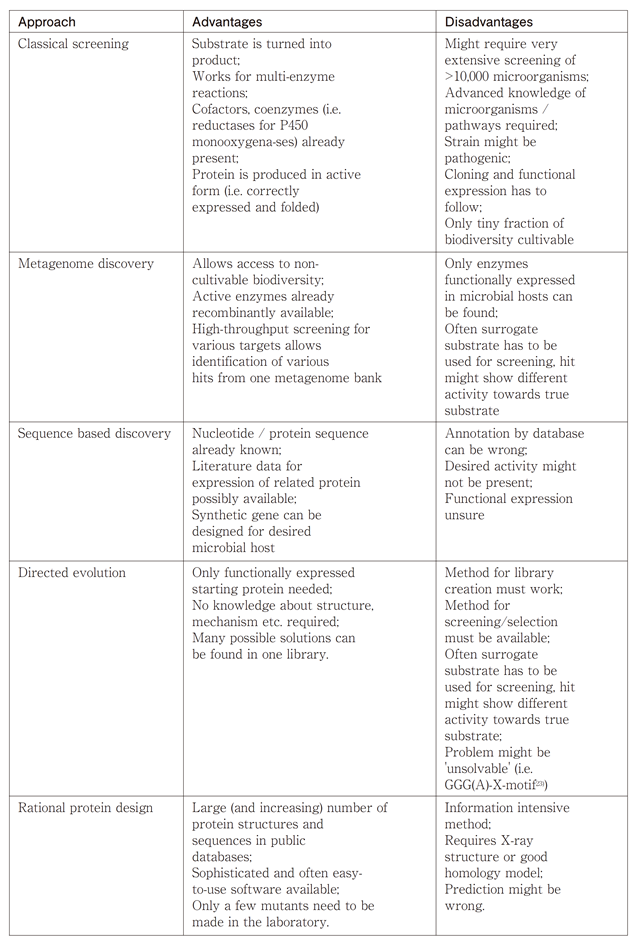 Table 1 Comparison of different approaches to identify suitable biocatalysts.