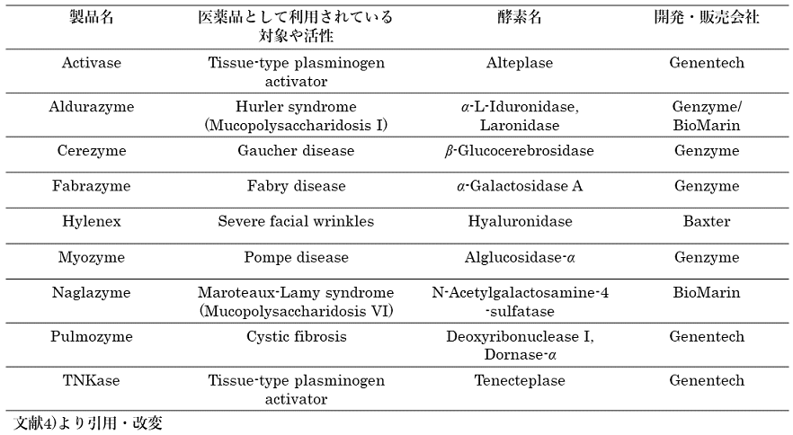 表1 欧米において上市されている組換えCHO動物細胞を用いて生産される酵素医薬品4)