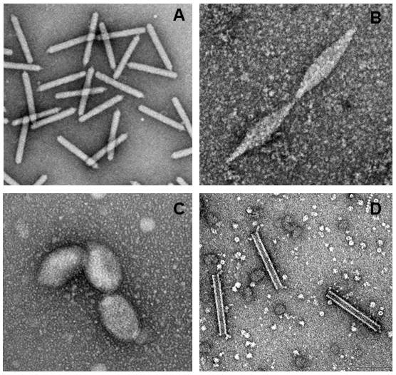 1-2 多様なる超好熱古細菌ウイルスの形状:レモン/紡錘型