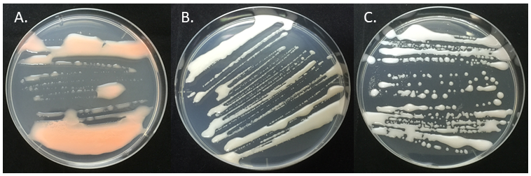 昭和基地における冬季の気温は-40℃前後で、これは筆者が現在住んでいる北海道旭川市の最低気温とあまり変わらない。しかし夏季には30℃以上になる北海道とは異なり、南極の昭和基地では1年のうち10ヶ月間は平均最高気温がマイナスとなっている。つまり、昭和基地では1年の大半を0℃以下の気温となる。では、南極に生息している菌類は氷点下でも成長するのだろうか?筆者は昭和基地のある東オングル島から分離した生育上限温度が15℃以下の好冷菌から30℃まで成長が可能な耐冷菌までの16種を選抜し、-3℃で培養することで氷点下における成長能を調べてみた。-3℃という培養温度は、インキュベータなどの温度の誤差を考慮すると、菌類の培養実験で広く使われているYPD液体培地やポテト・デキストロース寒天培地が凍らない下限の温度である。その結果、至適増殖温度や増殖上限温度に関わらず、全ての種で-3℃での増殖を確認した7)。実際に-3℃で3週間培養した際のシャーレの写真が図1である。3週間の培養で、はっきりとコロニーが確認できるまで増殖しているのが分かる。