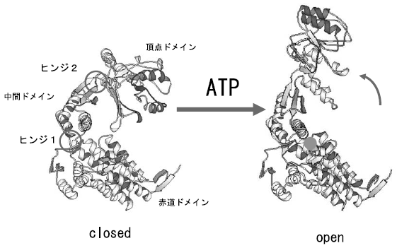 以上のようにGroEL/GroESの立体構造はシャペロニンの機能を理解する重要なヒントを与えてくれた。では、上で述べた立体構造が実際の反応サイクルでどのような意味をもつのか次に見てみよう。