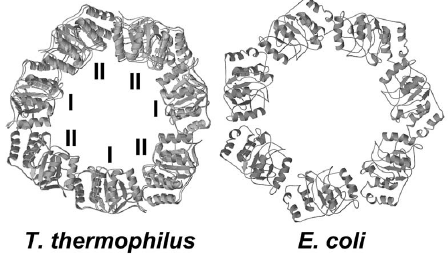 なお、GroEL、GroESともにTrpは含まれていない。大腸菌GroELは60℃くらいまで安定である (GroESは90℃でも失活しない)。