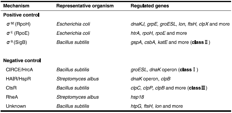 表2 真正細菌の熱誘導遺伝子の発現制御機構