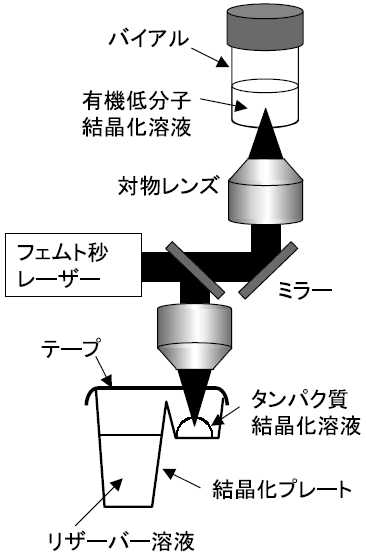 フェムト秒レーザー照射によるタンパク質・有機低分子の結晶化