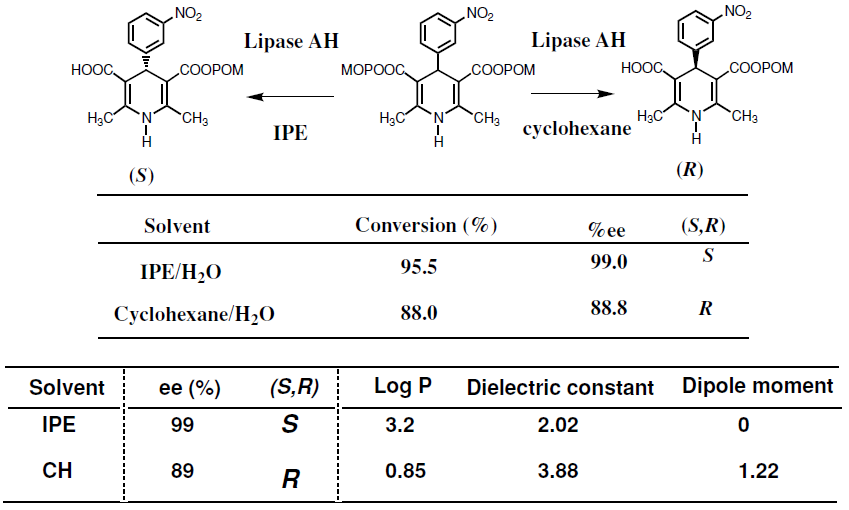 図5 溶媒効果による酵素の立体選択性への影響11)