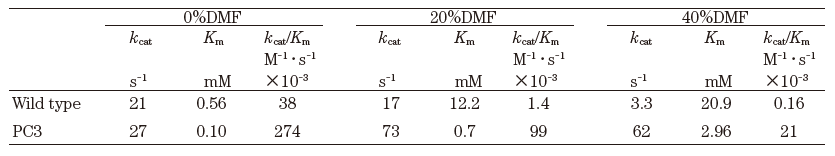 表3 ズブチリシンEとその変異酵素のDMF中での動力学定数