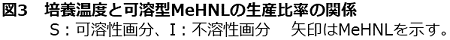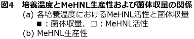 一般に、インクルージョンボディ形成を抑制するための方法として、一旦菌体を増殖させてから培養温度を下げて誘導基質を添加してさらに培養を継続する方法が知られている。しかし、この方法は、フラスコレベルなら短時間で温度シフトが可能であるが、大型培養装置では、伝熱面積が小さくなるため容易な作業ではない。そこで、培養開始時点から誘導基質を添加し、温度をシフトさせるのではなく、培養初期から低温で培養を行い、MeHNLの生産を試みた。本検討の結果、至適培養温度の37℃での培養に比べ、培養温度を低下させるほど可溶型のMeHNLの割合が増加し、活性型MeHNLの生産量は大幅に増加した (図3)。低温培養条件では、代謝がゆっくりと進むため、タンパク質合成速度とフォールディング速度とのバランスが取れてきたため、正常なフォールディングが起こり易くなったからではないかと思われる。