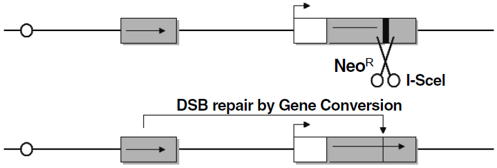 表1 I-SceIによる二重鎖切断によって誘導されたHR (遺伝子変換)