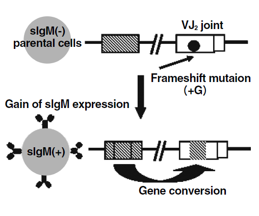 5.抗体遺伝子可変領域の多様化にかかわるHR (Ig gene conversion) における役割