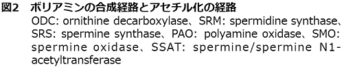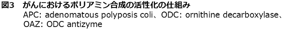 ポリアミン合成の律速酵素はODCである。がん抑制遺伝子APCの下流にMYCが位置し、そのMYC遺伝子の更に下流に位置する (図3) 26)。APC遺伝子の変異によるMYCの活性化はアデノーマの時点でも起こるために、がんだけでなくアデノーマにおいてもこれらの代謝の変化が起きうると考えられる27)。