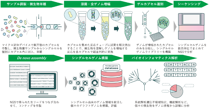 図1 微生物シングルセル解析bit-MAPによる未培養微生物遺伝子データ収集の流れ